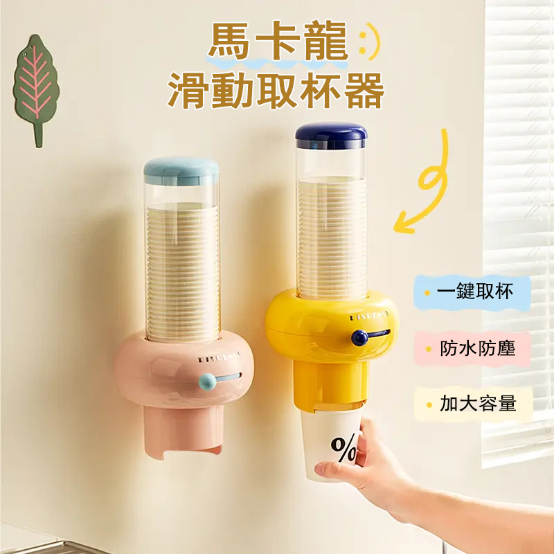 馬卡龍滑動取杯器家用防塵一次性紙杯架免打孔壁掛式紙杯收納架